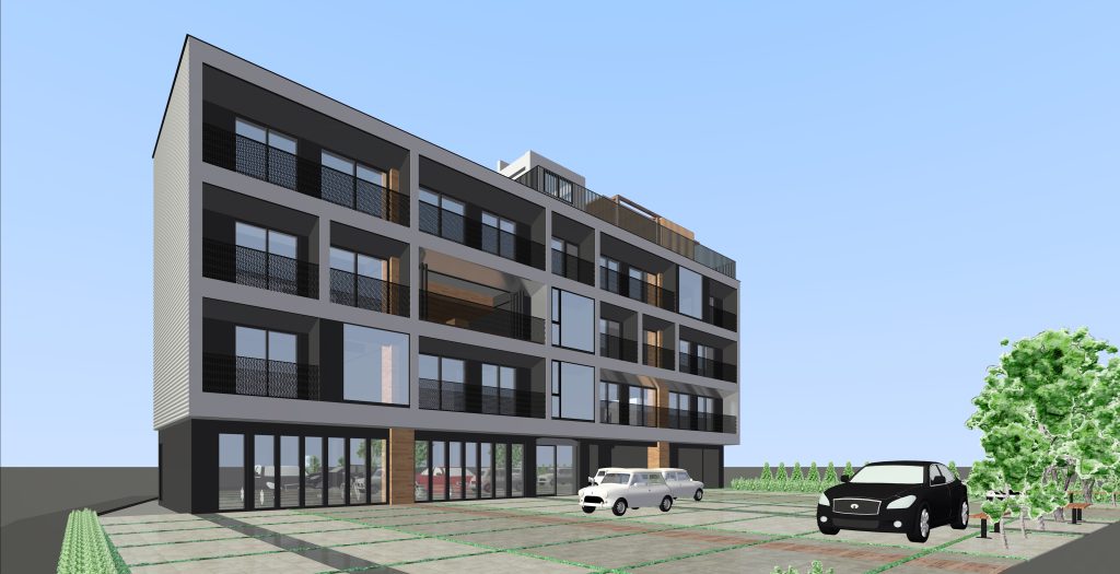 2年もの間大きな設計変更を繰り返しながら設計を進めてきたプロジェクトが令和3年10月11日に確認済証をようやく本当にようやく確認済証を取得しました。基本構想から全て設計デザインさせていただき、お施主様の75周年記念プロジェクトに相応しい自信作となったと思います。しかし、着工。。。とはいきませんでした。建設会社との概算確認そして施主確認をしてきたのですが、最後の最後で金額の設定を見直すことになり設計変更の運びとなりました。確認済証交付直後に着工をせず設計変更をしたのは過去このプロジェクトが初めてです。残念ながらこのイメージパースは幻の作品となってしまいました。非常に残念なのですが私の自信作でしたが確認済証交付直後に歯車が狂いました。