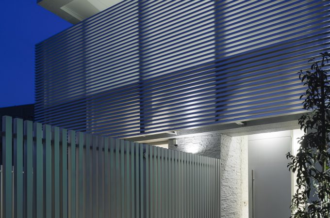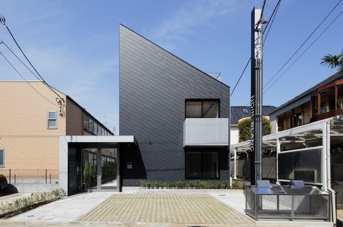 【SHINCHIKU】 東急多摩川線武蔵新田駅直近の敷地に建つ都市型2世帯住宅×2、店舗の複合施設。「ゲート」と「2層に連続するコ...