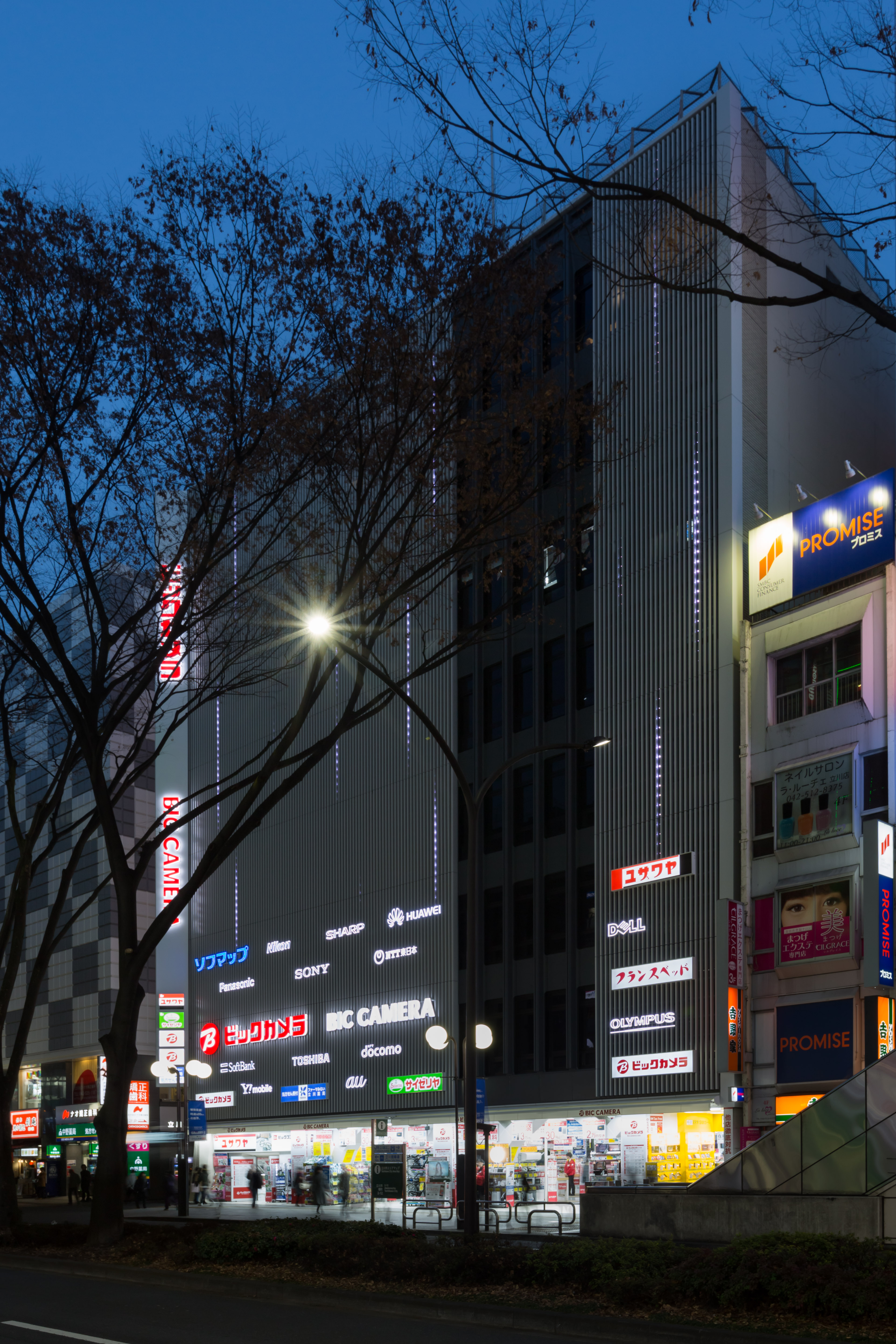 立川駅直近にある1970年に旧耐震基準で建てられた商業ビル物販店舗の居ながら耐震改修プロジェクト。既存ディテールを残しながら外観デザイン。季節の移ろいによって表情を変化させる商業施設らしい照明デザイン計画も実施。耐震補強によって耐震指標Is値0.6以上の確保。