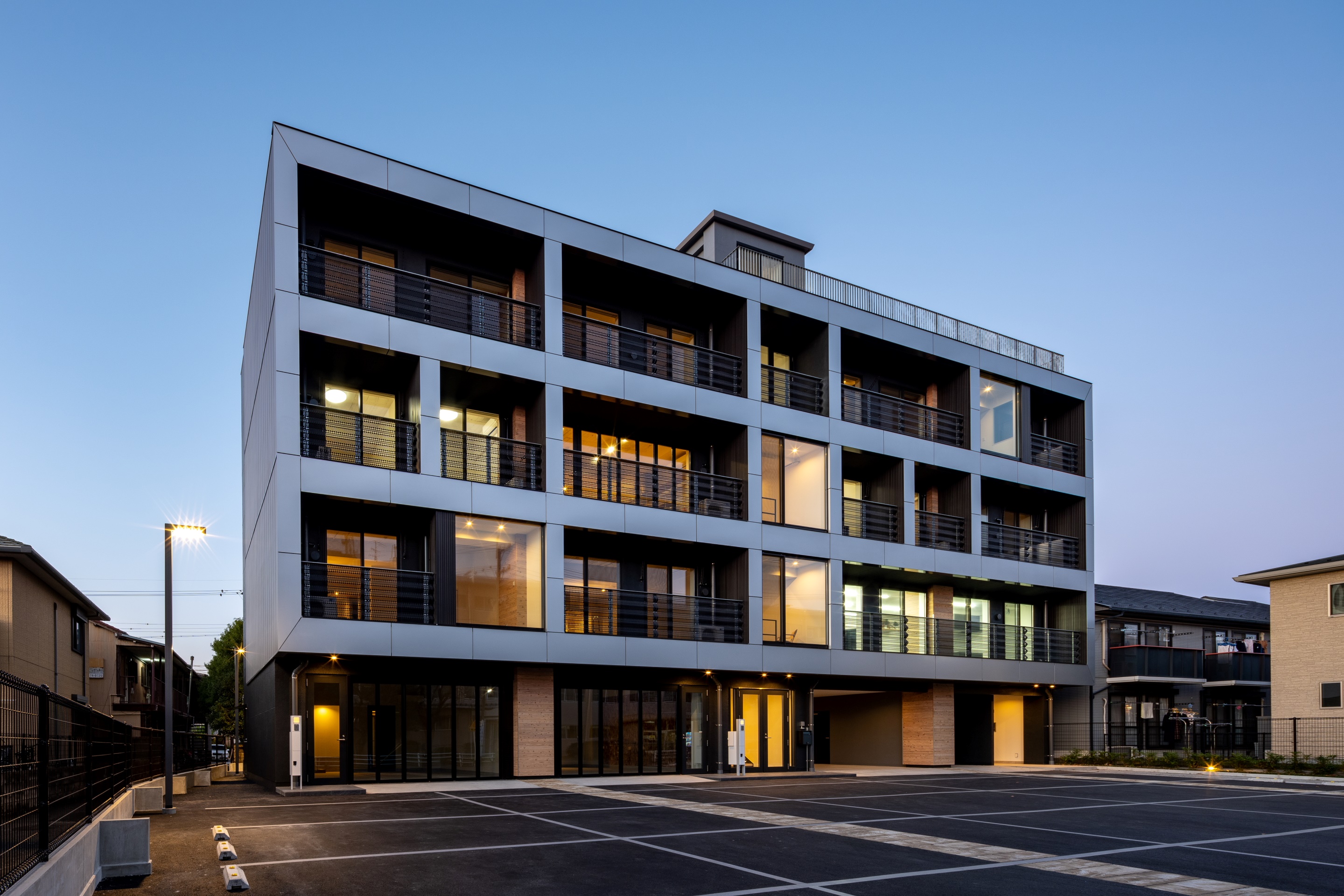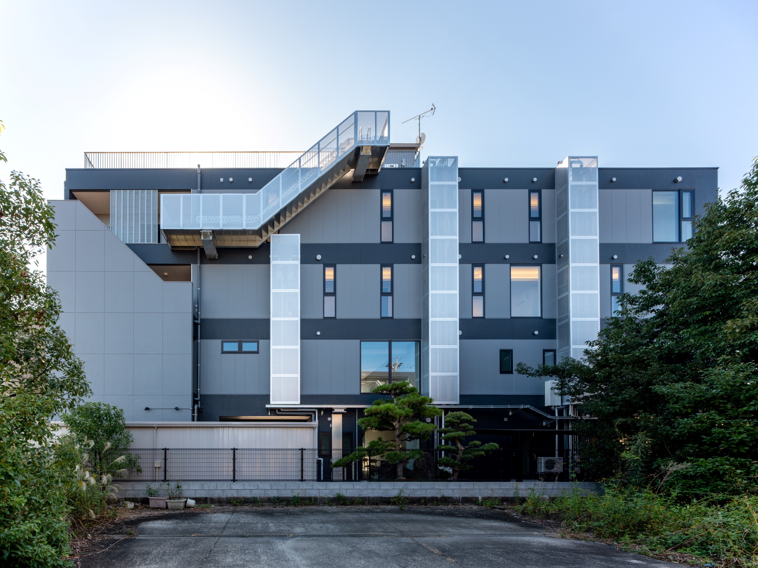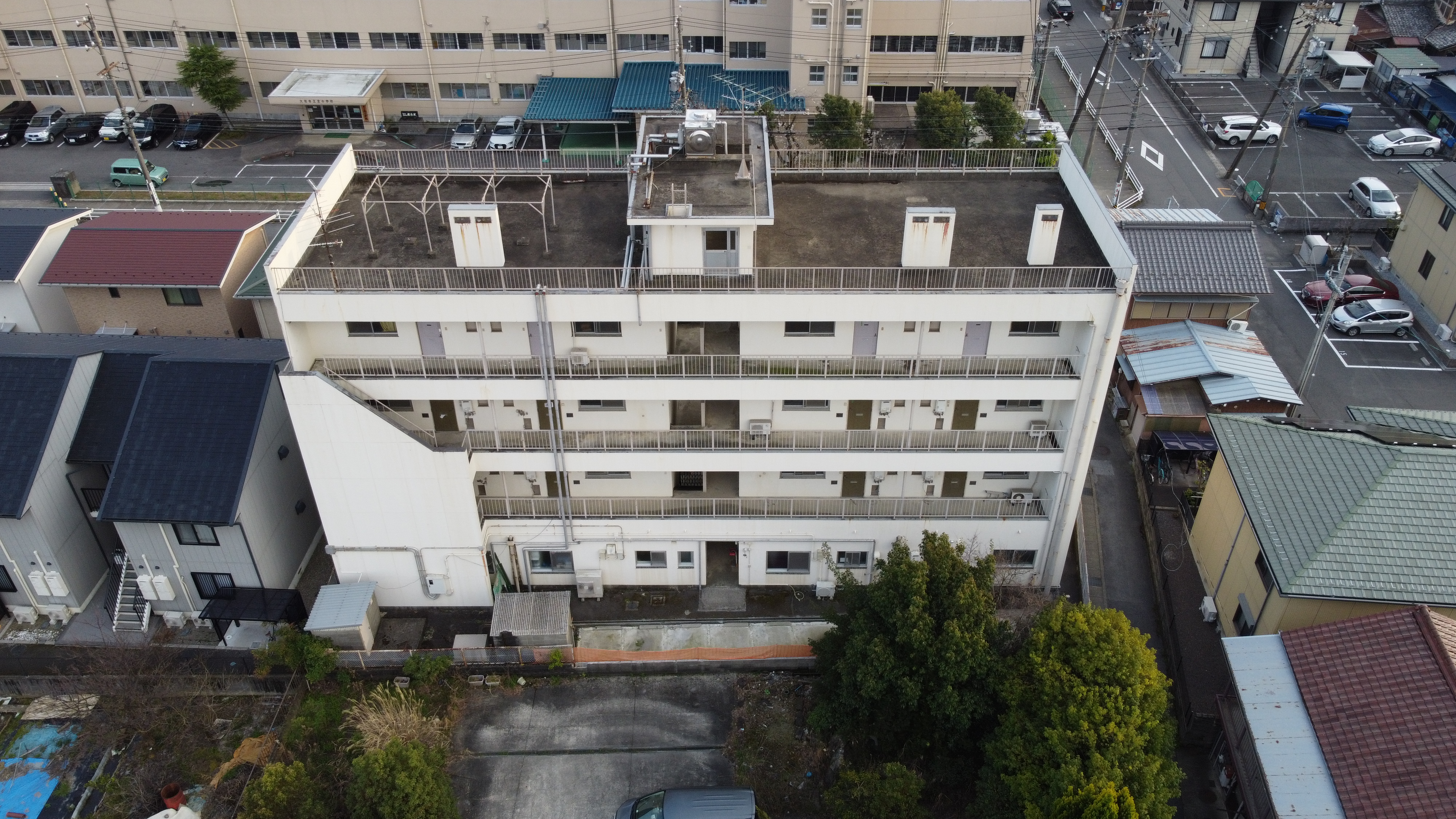 大垣市にある1967年に旧耐震基準で設計建設された検査済証の存在しない共同住宅の再生。レジデンス、シェアハウス、ガレージハウス、オフィスの複合施設に。環境性能評価、耐用年数評価、家歴書の作成、検査済証の取得等フルスペック再生を試み、再生のモデル化を図る。